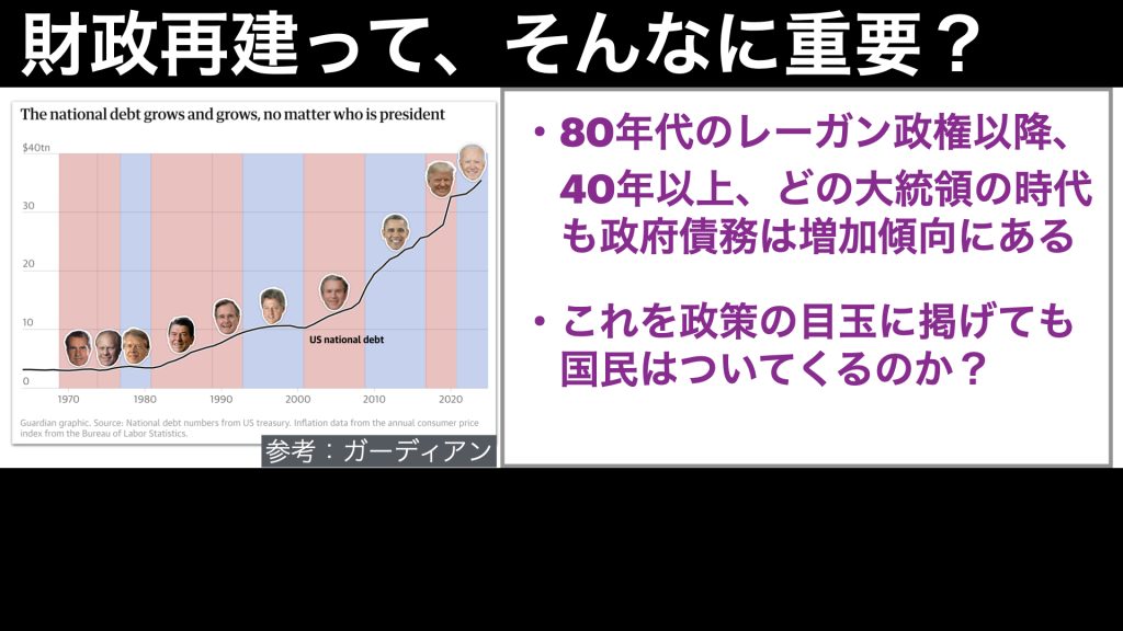 借金が多すぎるせいで、国民の生活が苦しくなっている、そして、それを政府は止められない、という状況を作れば、政府債務をしっかり管理すべきだと考える人が増えるでしょう。