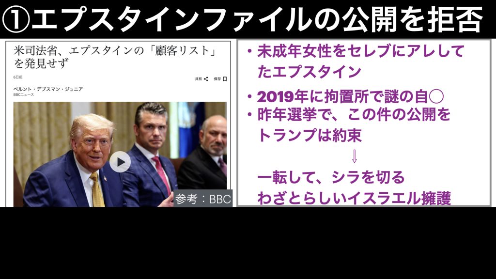 (1)エプスタイン・ファイルをわざとらしく開示拒否