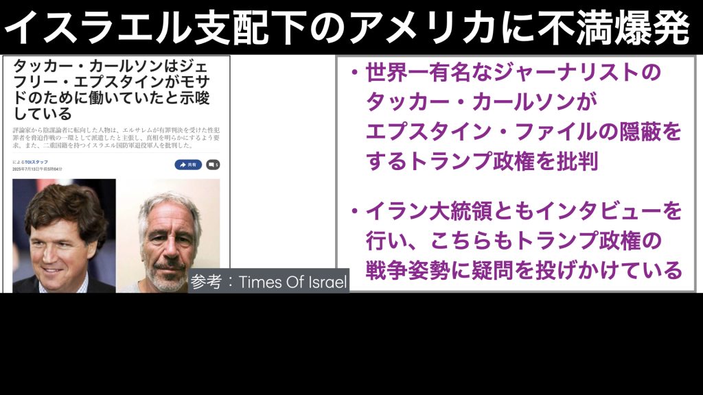 世界で最も影響力があると言われている、タッカー・カールソンは、この1ヶ月で、イランの大統領とインタビューをしたり、エプスタイン・ファイルを隠そうとするトランプ政権への批判を行っています。