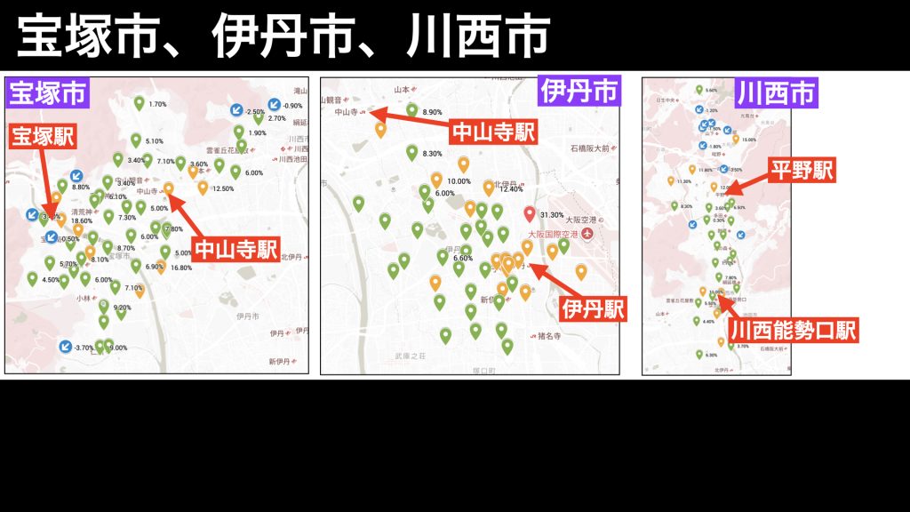 次は、宝塚、伊丹、川西方面を見てみましょう。