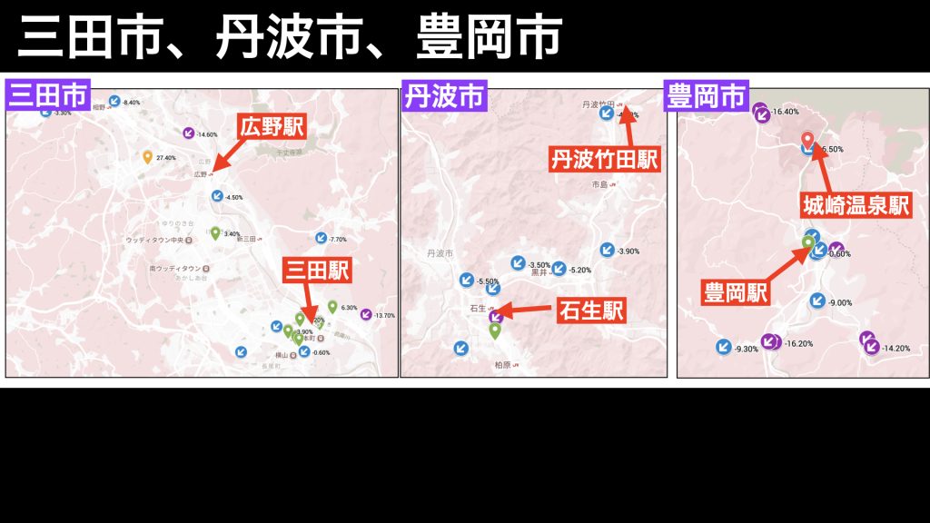 豊岡市は、城崎温泉駅近くの商業地で3割以上上がっていますが、こちらは商業地です。外国人観光客が増えたことで、局地的に上昇しているところが見られるようです。