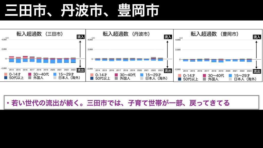 三田、丹波、豊岡は、若い世代が出て行ってますね。