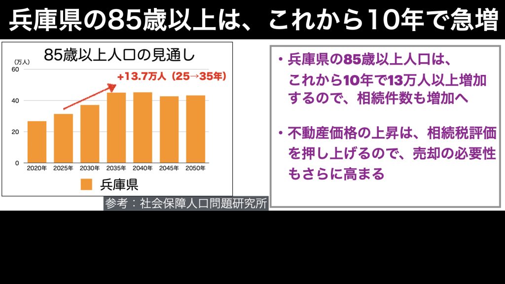 85歳以上の人口予想では、2035年まではずっと増加が予想されています。そのため、相続件数は今後さらに増えていくと予想されます。