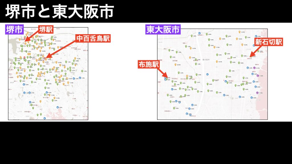次は、大阪の隣の堺市と東大阪市を見てみましょう。