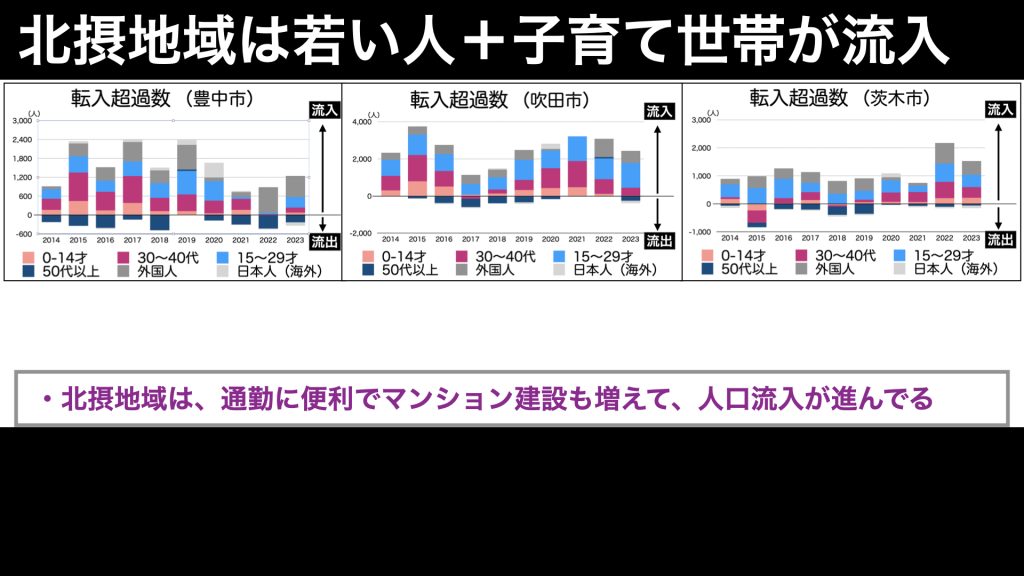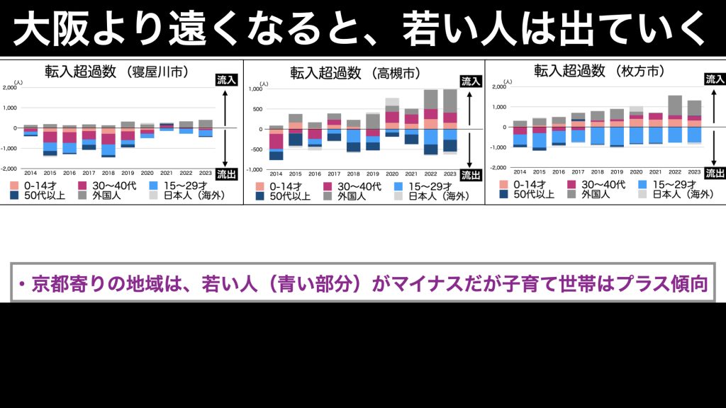 ただ、東大阪市だけは、ここ1、2年で、子育て世帯が出ていく数が減っており、若い世代もむしろ増加傾向にあります。大阪市内の不動産価格が上がりすぎて、こちらに流れてきているのかもしれません。