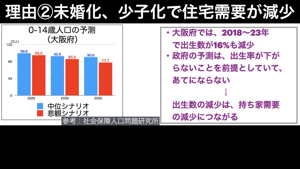 2つ目は、未婚化、少子化がさらに進むので、家の需要はさらに減っていくということです。