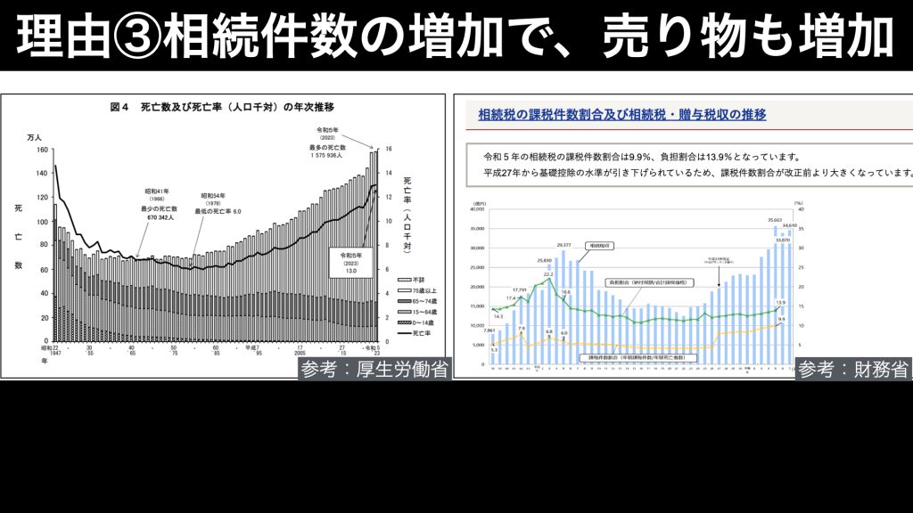 (3)死亡者数、相続件数の増加で、売り物が増える