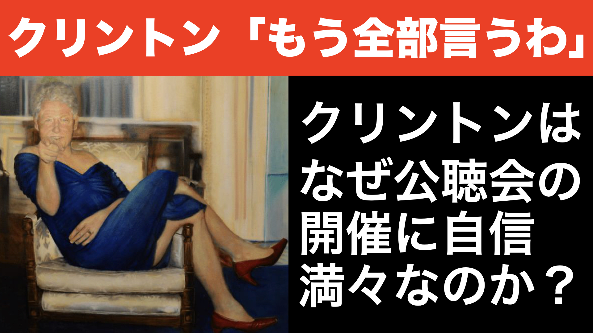 今回の動画は、「もう全部言うわ。クリントンはなぜ公聴会の開催に自信満々なのか?」ということで、やっていきたいと思います。