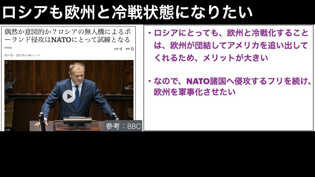 一方で、欧州が軍事国家に変わっていくとすると、ロシアも歓迎しているような気がします。