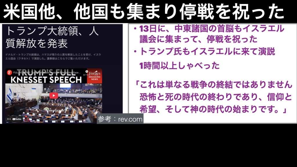 そして、13日には、トランプ氏がイスラエル議会で、1時間以上の演説を行いました。