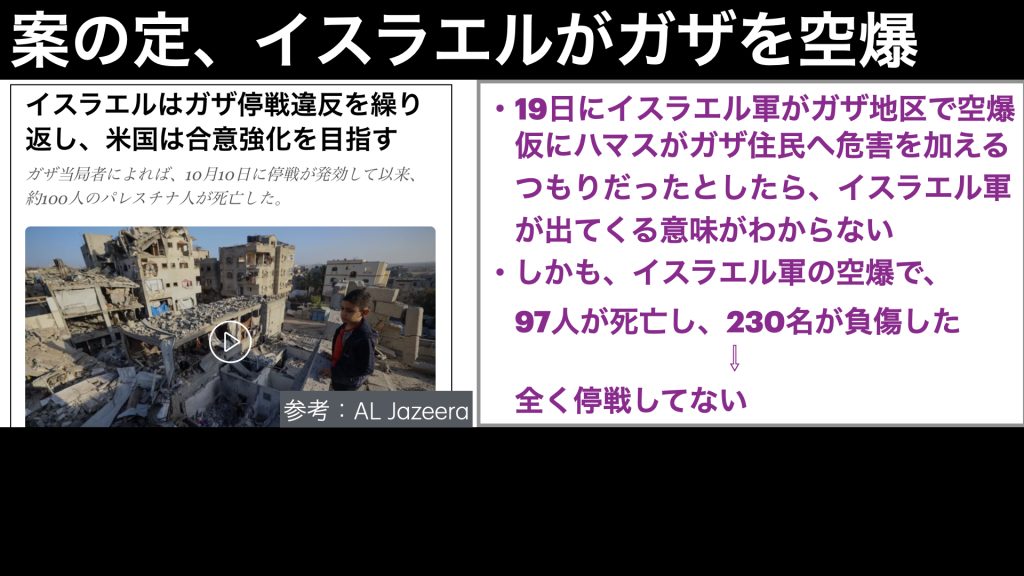 これがトランプ氏とイスラエルが、停戦を宣言しながらも、その後もパレスチナ人への攻撃をやめない理由なのではないでしょうか?