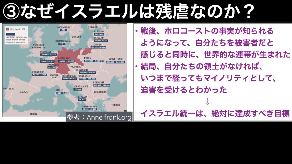 そして3つ目は、なぜイスラエルが残虐なのか?という点です。