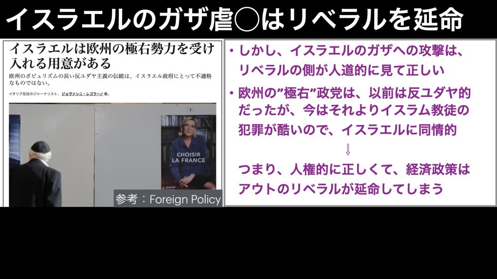つまり、これらの欧州諸国では、イスラエルが酷いことをすればするほど、保守政党に対する反発が強まり、政権をとりにくくなるのです。