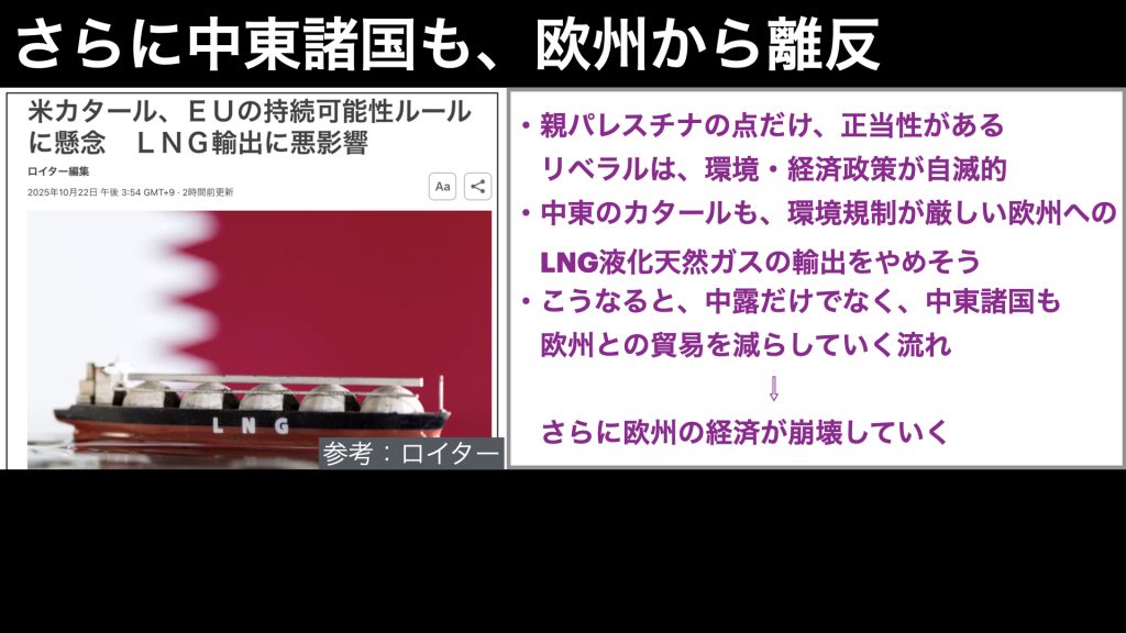 そうすると、欧州は中露だけでなく、中東との関係も切られることになります。