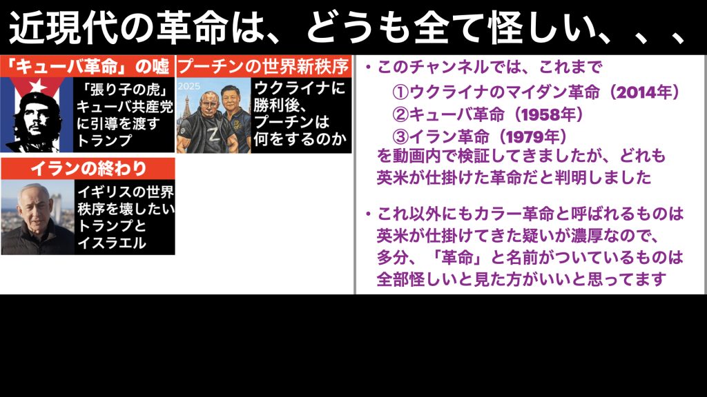 について、それぞれ動画内で検証してきたのですが、どれも英米が仕掛けたでっち上げ革命だと判明しました。