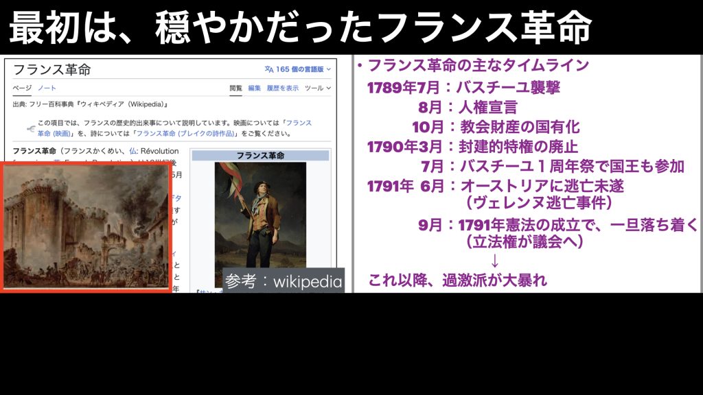 また、フランス革命を時系列で見ていくと、最初はけっこう穏やかだったことがわかります。