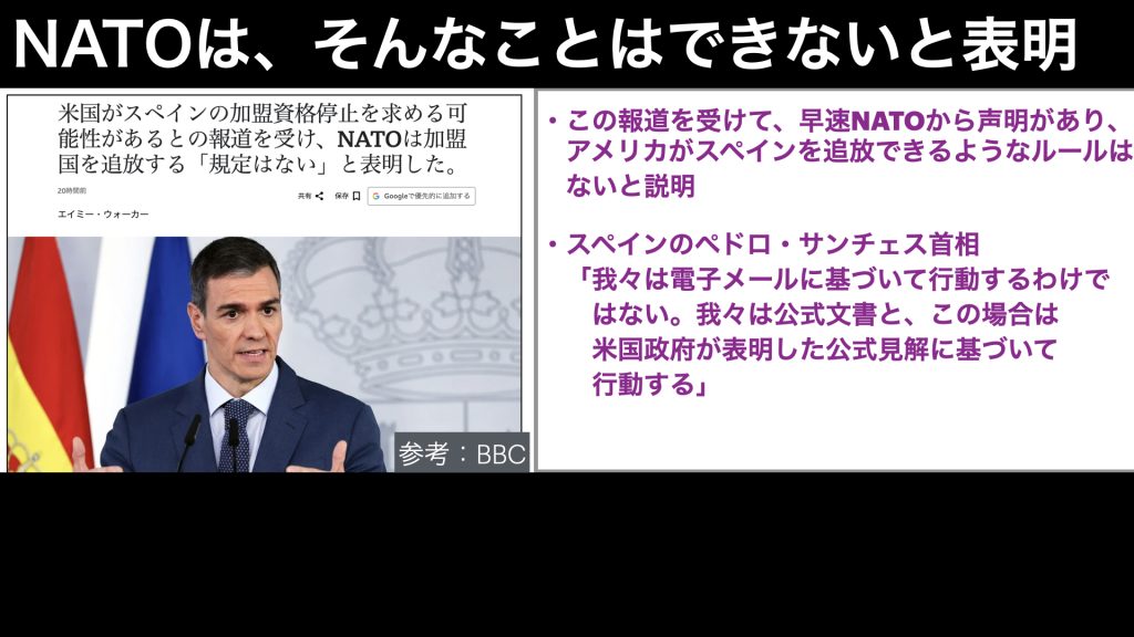 現在のNATOには、アメリカがどこかの国を追放できるようなルールはないとのことです。