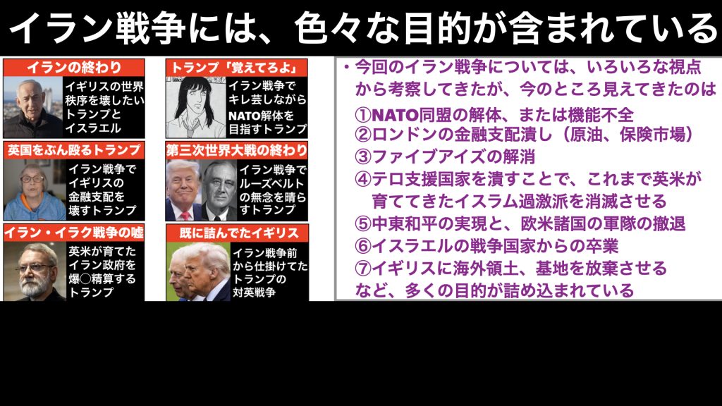 それで、今回のイラン戦争には、いろいろな目的が含まれているように感じます。