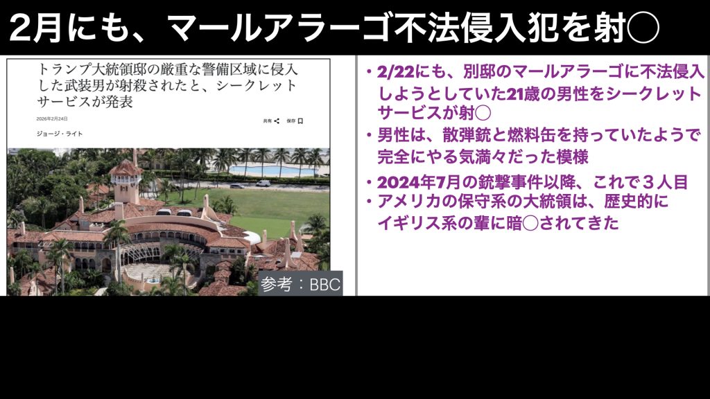 また、2月にはこのマールアラーゴに不法侵入しようとした21歳の男性が、射殺されるという事件もありました。この男性は、散弾銃と燃料缶を持っていたということで、トランプ氏をやる気満々だったのです。暗殺未遂事件も、一昨年の7月以降で3回目になります。