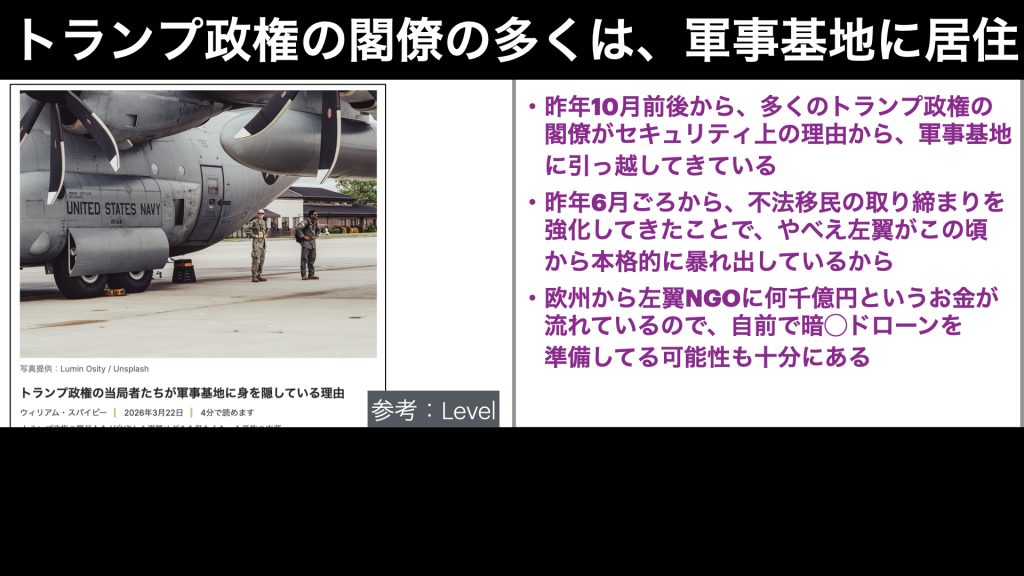 そのためか、トランプ政権の閣僚も、昨年10月前後から米軍基地に居住地を移しています。